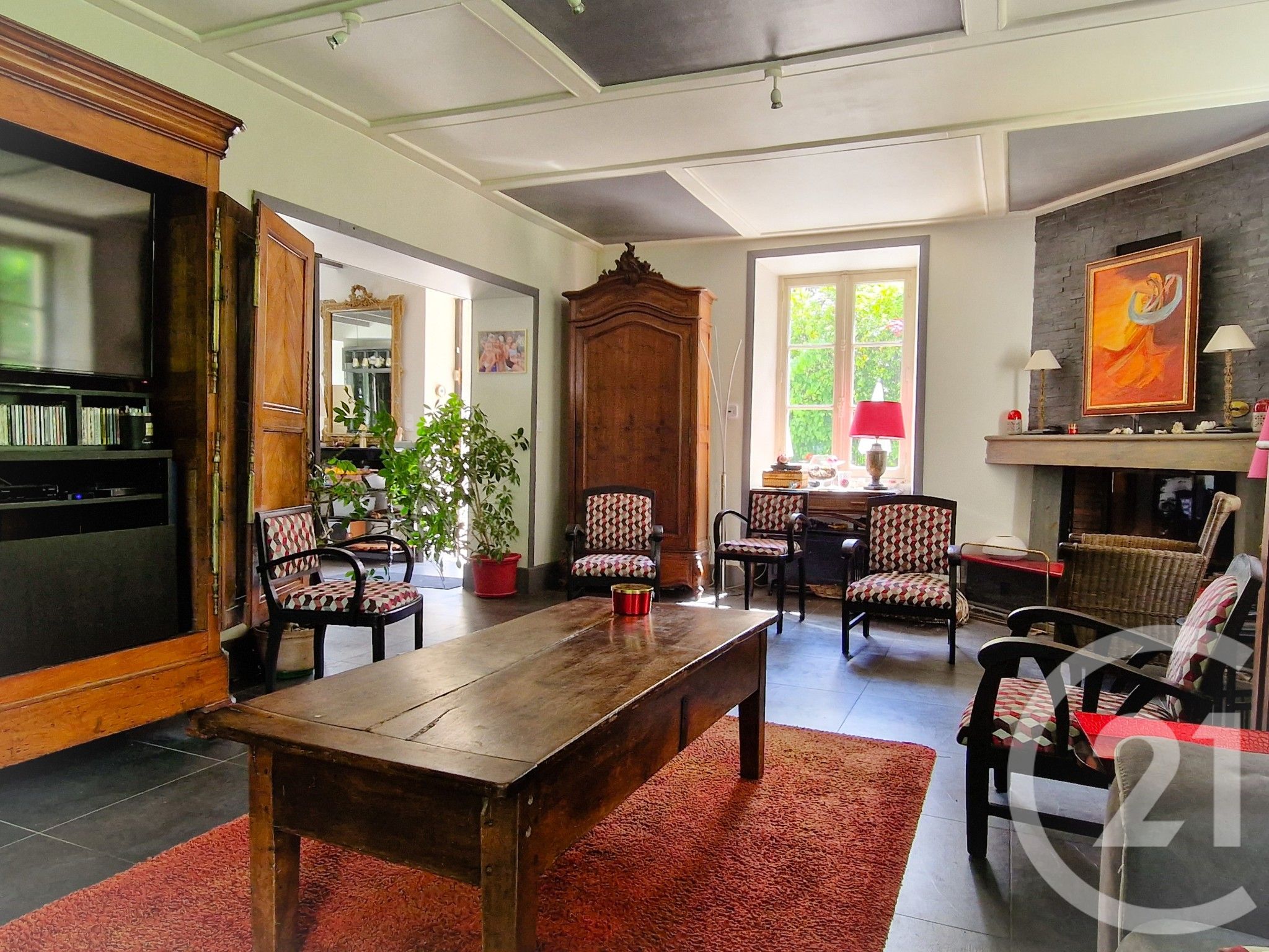 - Cheminée, double vitrage, placards, poutres, tennis